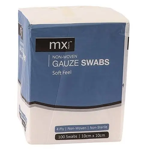 MX GAUZE SWABS NON-WOVEN 100MM 4PLY 100